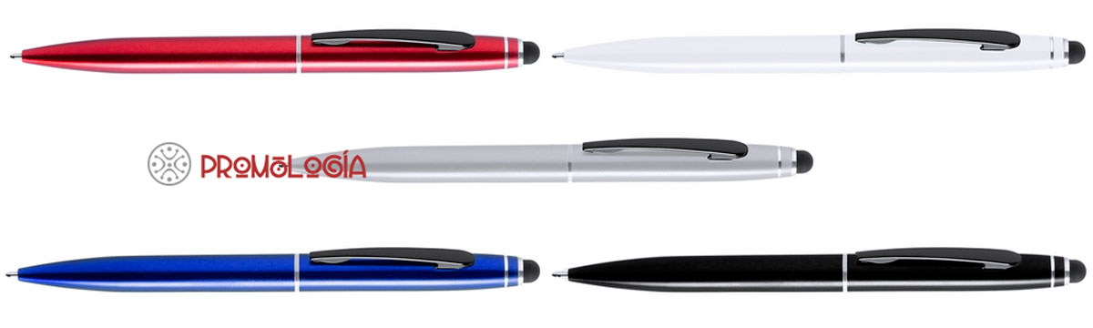 La nueva y la vieja escritura se unen en esta bella herramienta promocional de aluminio, de 14 cm. de largo por 1 de diámetro y 16 grs. de peso. Cinco colores disponibles para elegir en múltiplos de 50 unidades: rojo, plata, azul, blanco y negro. Impresión en tampografía sobre el cuerpo del bolígrafo, recomendado parte superior.