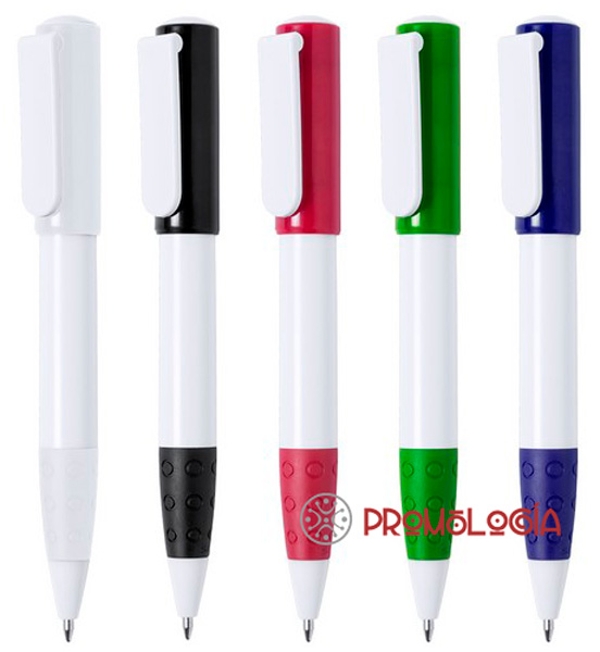 Bolígrafo Atlas de STYB con mecanismo pulsador y suave cuerpo en color blanco con accesorios en variada gama de colores. Con suave empuñadura a juego, gran clip para marcaje y tinta azul. Medida y Peso Articulo: 13 cm   |  Ø 1.4   |  11 gr.
