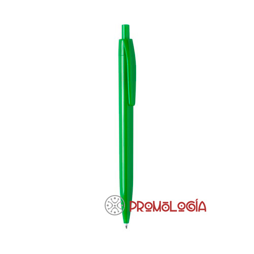 Sencillo bolígrafo promocional de plástico, con apertura por pulsador y clip, disponible en 8 colores. Dimensiones: 13,8 cm | Ø 1 cm. Peso 7 grs. La impresión se realiza en tampografía.