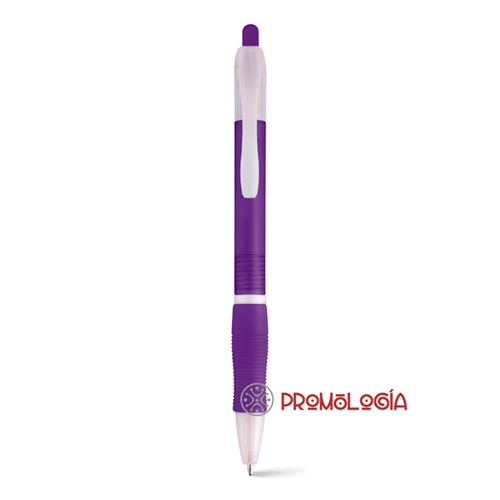 Bolígrafo con pulsador promocional fabricaedo en plástico. Uno de nuestros modelos más demandados dado el bajo precio, buen diseño y resultados. Dispone de puntera antideslizante y se trata de un bolígrafo de escritura azul.