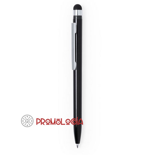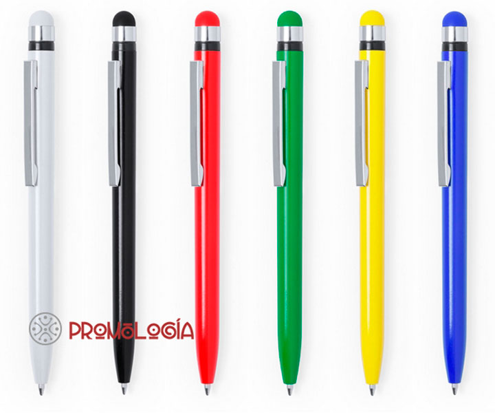 Bolígrafo promocional de plástico con puntero en su parte superior. Dimensiones: largo 12,5 cm., diámetro 0,9, peso 6 grs.