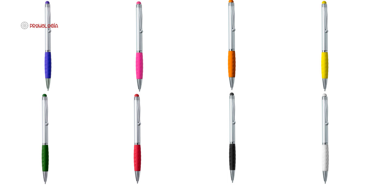Bolígrafo de plástico de cuerpo plateado y puntero más detalles en 8 colores