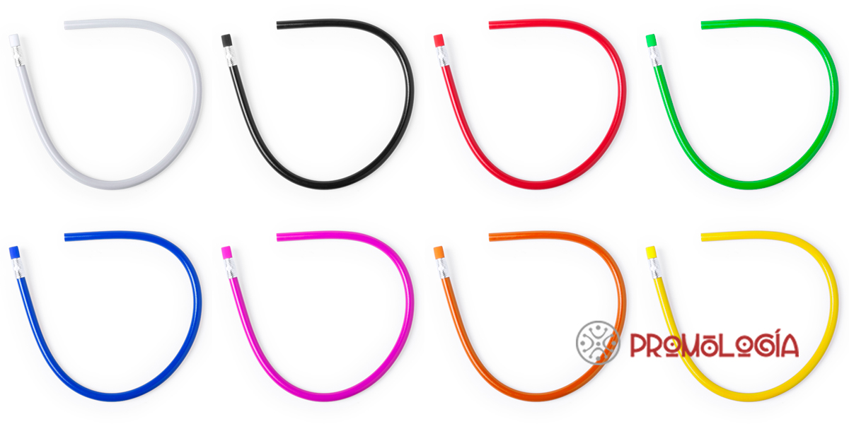 Lápiz flexible extra largo con suave cuerpo de PVC en vivos y variados colores con goma de borrar a juego. Especialmente indicado para promociones con target de edad inferior a 14 años.