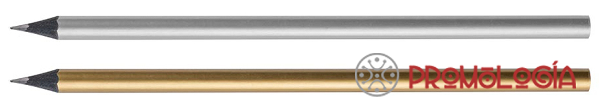 Elegante lápiz de madera negra con mina a juego y cuerpo en elegantes colores plateado y dorado. 17.7 cm | 0.7 Ø | 4 gr.